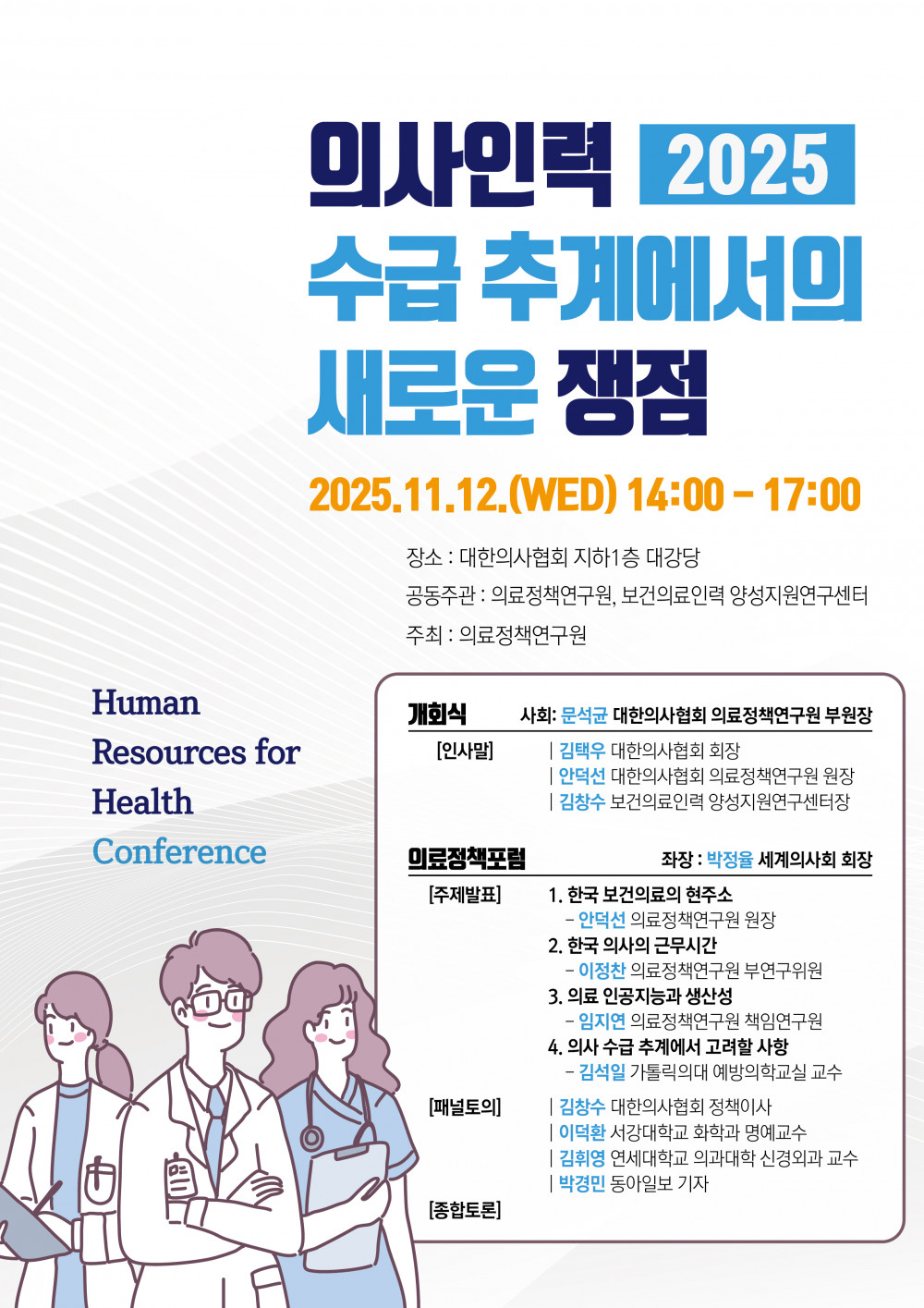 대한의사협회에서 [의료정책연구원]제1차 HRH 컨퍼런스 홍보 요청 가 있었습니다.