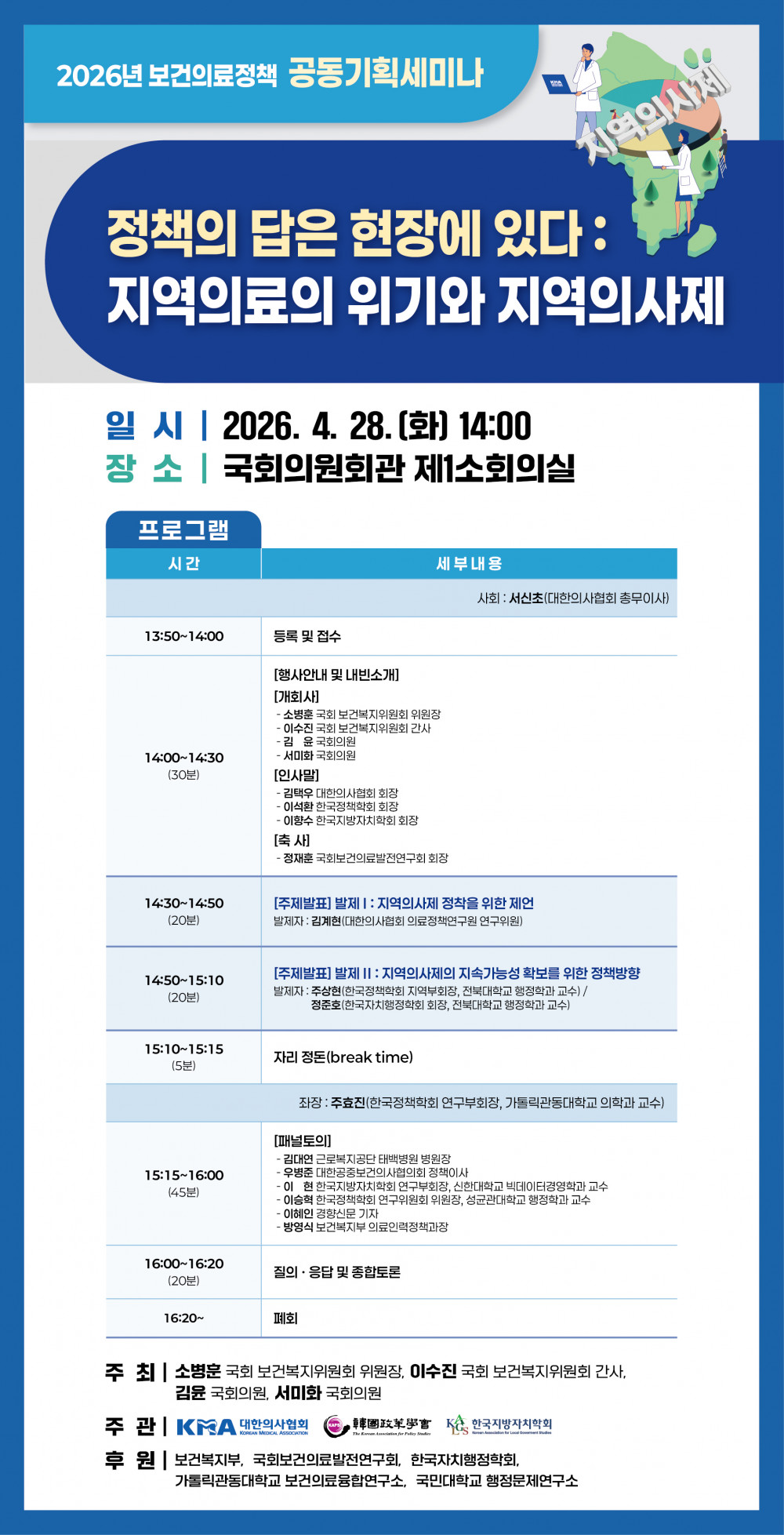 [의협] 2026년 보건의료정책 공동기획세미나 「정책의 답은 현장에 있다, 지역의료의 위기와 지역의사제」 개최 안내